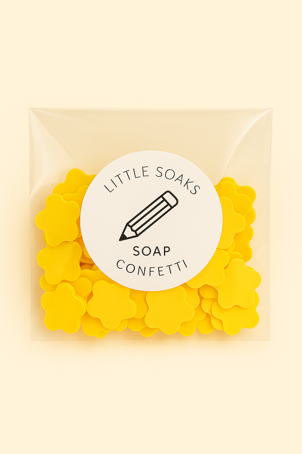 - First Day Fizzies (limited-edition soap confetti, skin-safe and lightly scented)